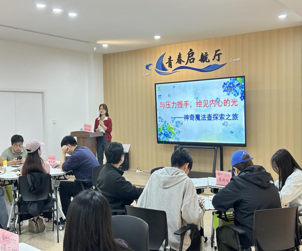 为深化“心理育人”工作内涵,关爱教职工心理健康,构筑协同育人“同心圆”,11月13日下午,由继续教育学院/博雅教育学院(以下简称“我院”)心理健康教育指导中心组织、我院党支部牵头举办的“神奇魔法壶之旅”教职工心灵探索团体辅导在格物楼育人空间青春启航厅成功举行。本次活动由我院党支部书记郭星同志牵头、心理健康教育指导中心负责人林巧璇老师设计并带领,别开生面的形式吸引了来自学校多个单位三十余位教师踊跃参与,现场氛围温馨而热烈。