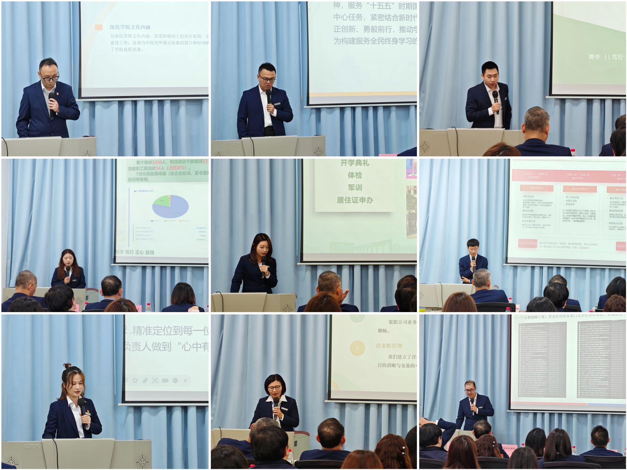 首先由学院各科室代表围绕学院2025年中心工作和年度重点任务,全面回顾了过去一年科室的履职情况及下一年的工作计划。