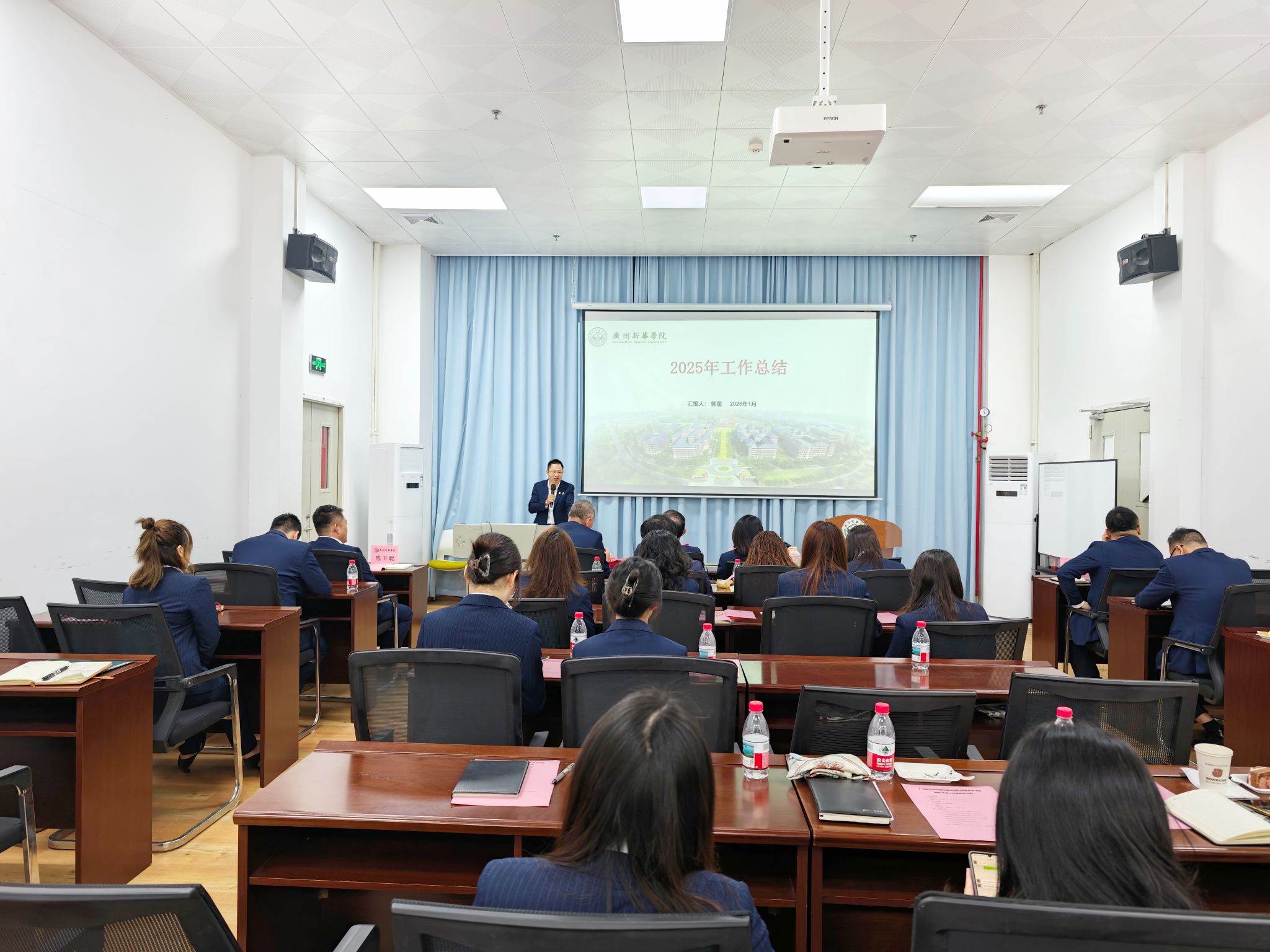 为全面总结学院2025年度工作成效,进一步凝聚全院教职工共识、激发干事创业活力,2026年1月20日,广州新华学院继续教育学院/博雅教育学院召开了2025年度工作总结会议,副校长李毅、副院长(主持工作)林圣封、副院长兼党支部书记郭星、综合办公室主任陈卫聪、教学与培训部主任吴梓旭及全院教职工们参加了会议。会议由副院长(主持工作)林圣封主持。